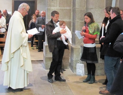 Au baptême :l’enfant est accueilli en Eglise, et on le déclare enfant de Dieu.