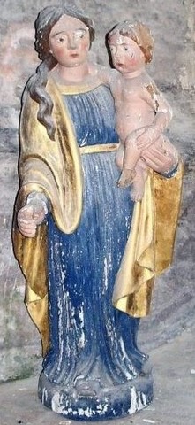 La longue incertitude quant au destin du bourg et de son église a malheureusement entrainé la disparition de plusieurs statuettes. Un évêque non identifié, privé de sa crosse et de sa main gauche (voir la 4° photo), une Vierge à l’Enfant en bois peint du XVIII° siècle (voir la 2° photo) et une Sainte Anne du XVIII° siècle subsistent encore, ainsi qu’une série de tableaux à l’encre de Chine dont l’un évoque le Christ comparaissant devant Pilate, tandis que la foule réclame sa mort.