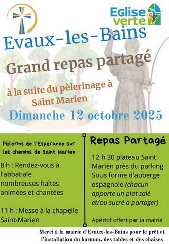 - Pèlerinage à St Marien : Départ à 8 H de l’abbatiale d'Evaux-les-Bains (voir affiche ci-contre) =>
