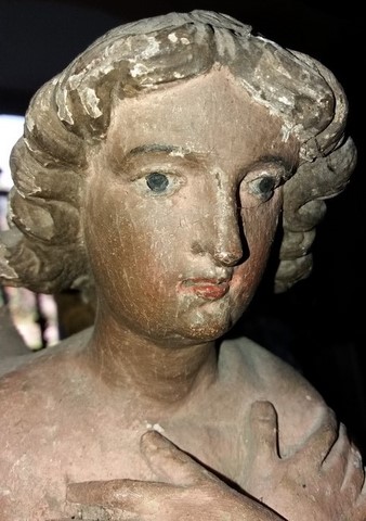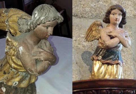 - les deux anges adorateurs (XVII° siècle) (voir ci-dessous les photos d'un des anges, avant et après restauration)