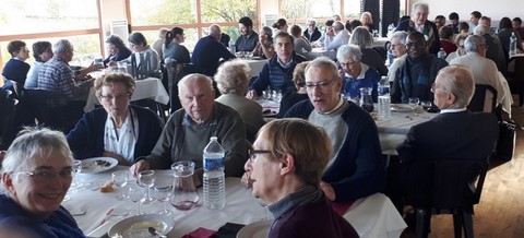 Le 27 mai 2018 à Crocq, après la messe dominicale concélébrée par les trois prêtres de la paroisse: les pères Jean-Luc Puig, Dominique Savadogo et Maurice Dajczlinder, l'assemblée paroissiale de Notre Dame de Haute Marche (environ 50 personnes), rassemblant les 6 relais de la paroisse : Aubusson, Bellegarde, La Courtine, Crocq, Felletin et Vallière s'est réunie pour un repas convivial dans la salle des fêtes de Crocq, en présence de M. Jacques Longchambon, maire de Crocq. Un échange fructueux d'informations concernant ces 6 relais et le père Puig a suivi ce repas.