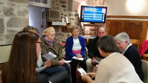 Le 30 novembre, à Reterre, à l’issue de la messe dominicale, d’un apéritif et d‘un repas partagé, se tenait la première assemblée paroissiale de St-Marien. Après quelques chiffres, et un tour d’horizon de l’existant sur le secteur, l’assemblée a pu réfléchir en groupes, sur les questions suivantes :