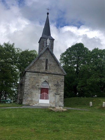 C'est là que, dans la seconde moitié du XIX° siècle, fut érigée une chapelle de style gothique, dédiée à la sainte Vierge Marie. Elle est en granit, et les toitures sont en ardoise. La couleur rouge de la porte, objet de diverses polémiques locales, est célébrée dans un charmant poème.
