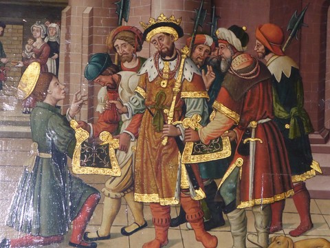 6. "Laissez venir à moi les petits enfants" - Sculpture sur bois placée à coté du baptistère, puisque c'est souvent là que les bébés entrent dans la famille de Dieu par le sacrement du baptême. Admirer la finesse du travail...