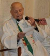 Photo : pendant la messe du centenaire, le P. Binon lit son discours de remerciement et d'action de grâce... sans ses lunettes ! Bon pied, bon oeil...