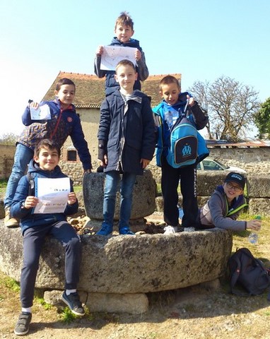 Une cinquantaine d'enfants, accompagnés de parents et de catéchistes, arpentent les rues à la recherche de mots qui vont baliser leur chemin... chemin qui mène à Pâques en ce début de Semaine Sainte. Par petits groupes, ils sont partis avec leur feuille de route ; et voici les mots qui ont balisés leur route :