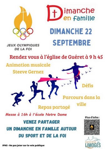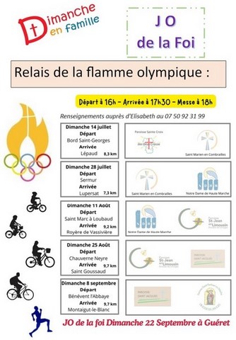 - Dimanche en famille / J.O. de la Foi 22 septembre 2024 à Guéret annoncé par la Flamme de la Foi pendant l'été 2024