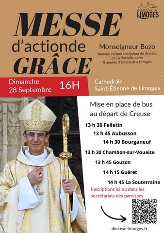 - 11 h : messe célébrée par le père Pierre Morin, vicaire général du diocèse de Limoges