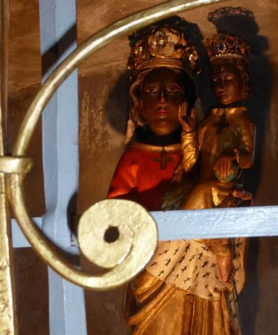 Statue de la Vierge Noire à l'Enfant, dite "Notre Dame Sous-Terre" - église de St Quentin la Chabanne (23). Cliquez sur l'image pour l'agrandir.